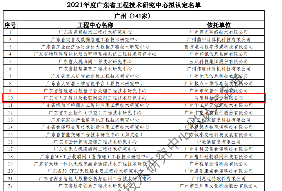 日前,广东省科技厅发布2021年度广东省工程技术研究中心名单。经过层层筛选、专家评审,依托开元建设的“广东省人工智能及物联网应用工程技术研究中心”榜上有名。广东省工程技术研究中心主要依托省内行业、领域具有科技实力的、拥有一定规模以上创新型企业建设,部分依托高校和科研院所组建。工程中心旨在